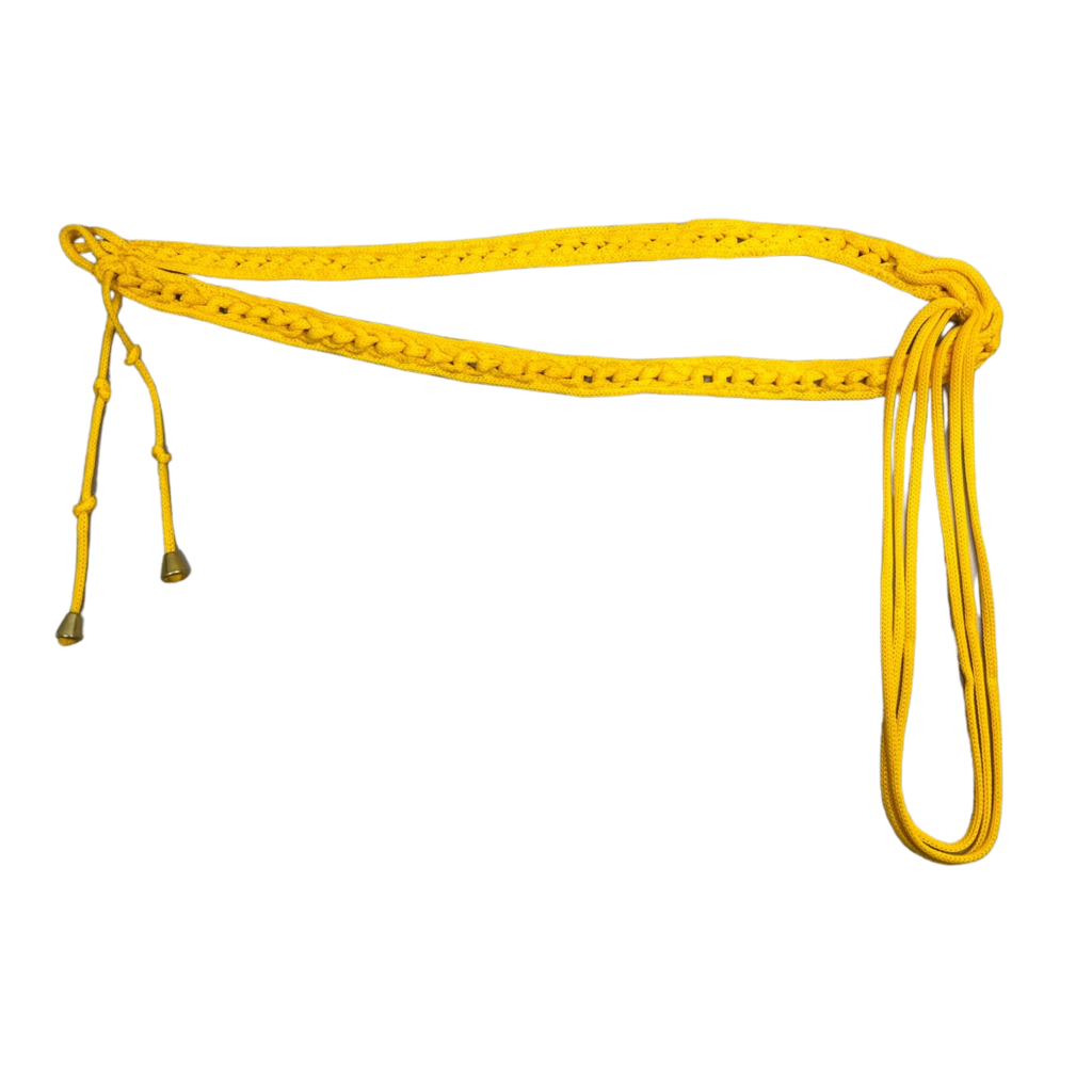 Trançado com as ponteiras em metal dourado. Possui, ainda três cordões simples em forma de alça, em raiom, três alças curtas, sendo uma na volta superior para adaptação na ombreira e duas outras nas extremidades das traças para fixação do 1° botão da túnica.