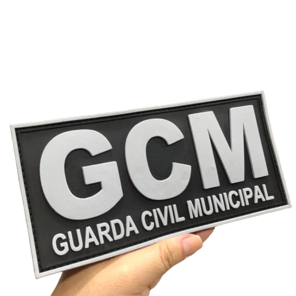Emborrachado GCM para uso em colete, medindo 9cm x 18cm